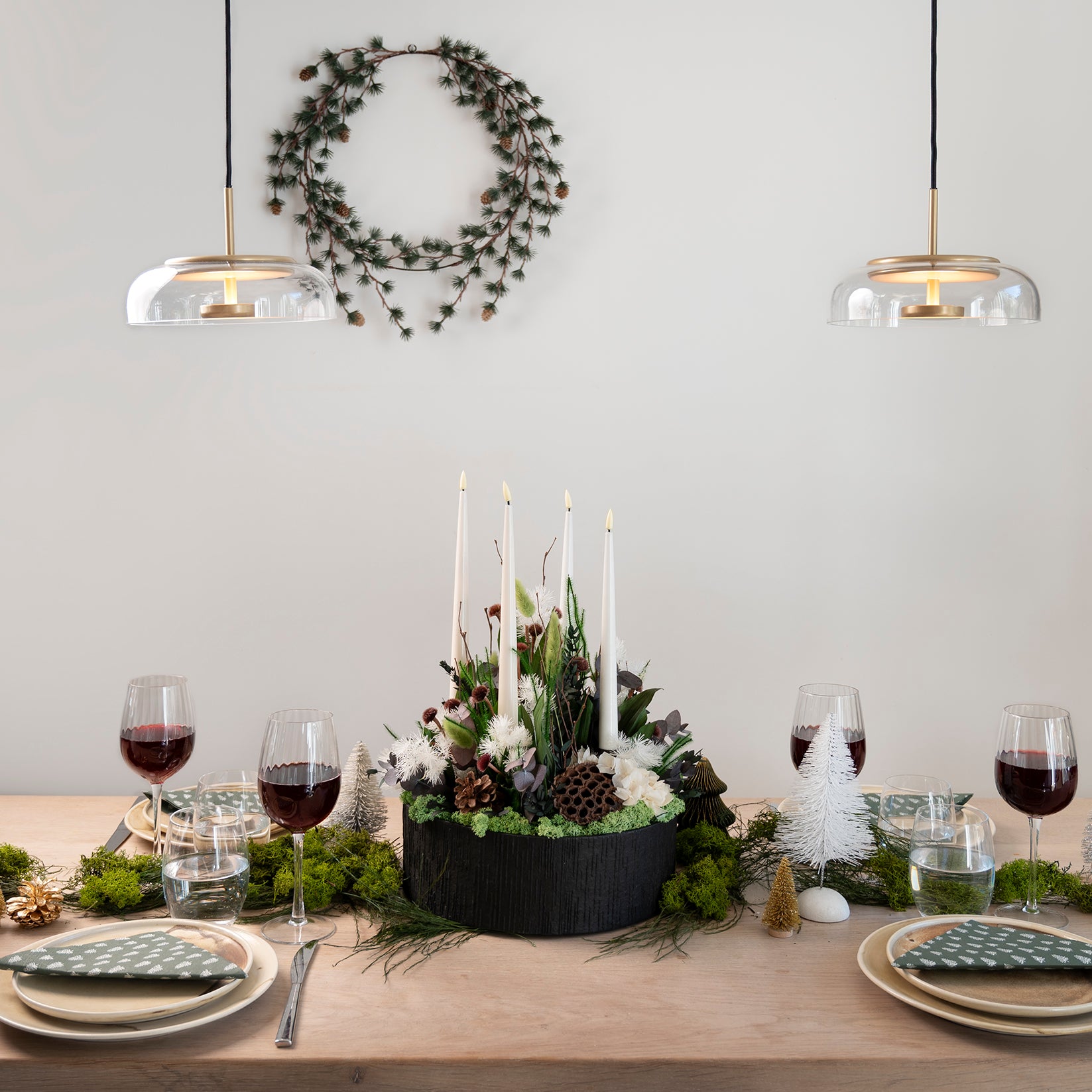Med vår julkollektion av långtidshållbara buketter och dekorationer kan du skapa en perfekt julstämning som varar hela säsongen. Kollektionen kombinerar klassiska julfärger med en palett av grönt och vitt för en nordisk, minimalistisk känsla.