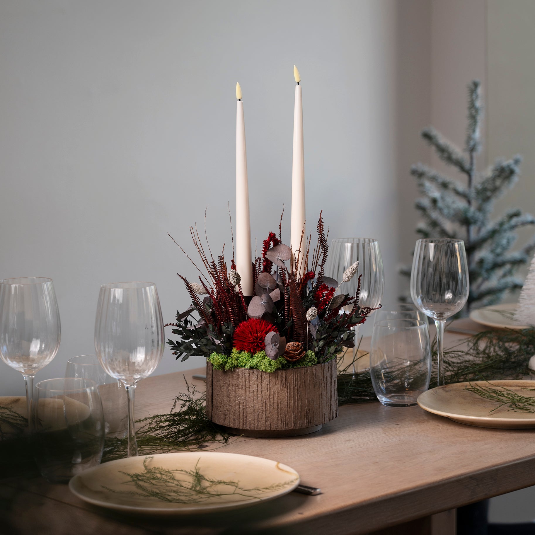 Living Flowers julkollektion är inte bara vacker, den är också designad för att hålla i minst sex månader. Kollektionen består av noggrant utvalda blommor med lång hållbarhet som håller sig vackra hela julsäsongen och långt därefter utan behov av skötsel eller vatten. Våra julblommor är perfekta som en del av dina juldekorationer eller julbord och kommer att sprida julstämning under hela december och däröver.