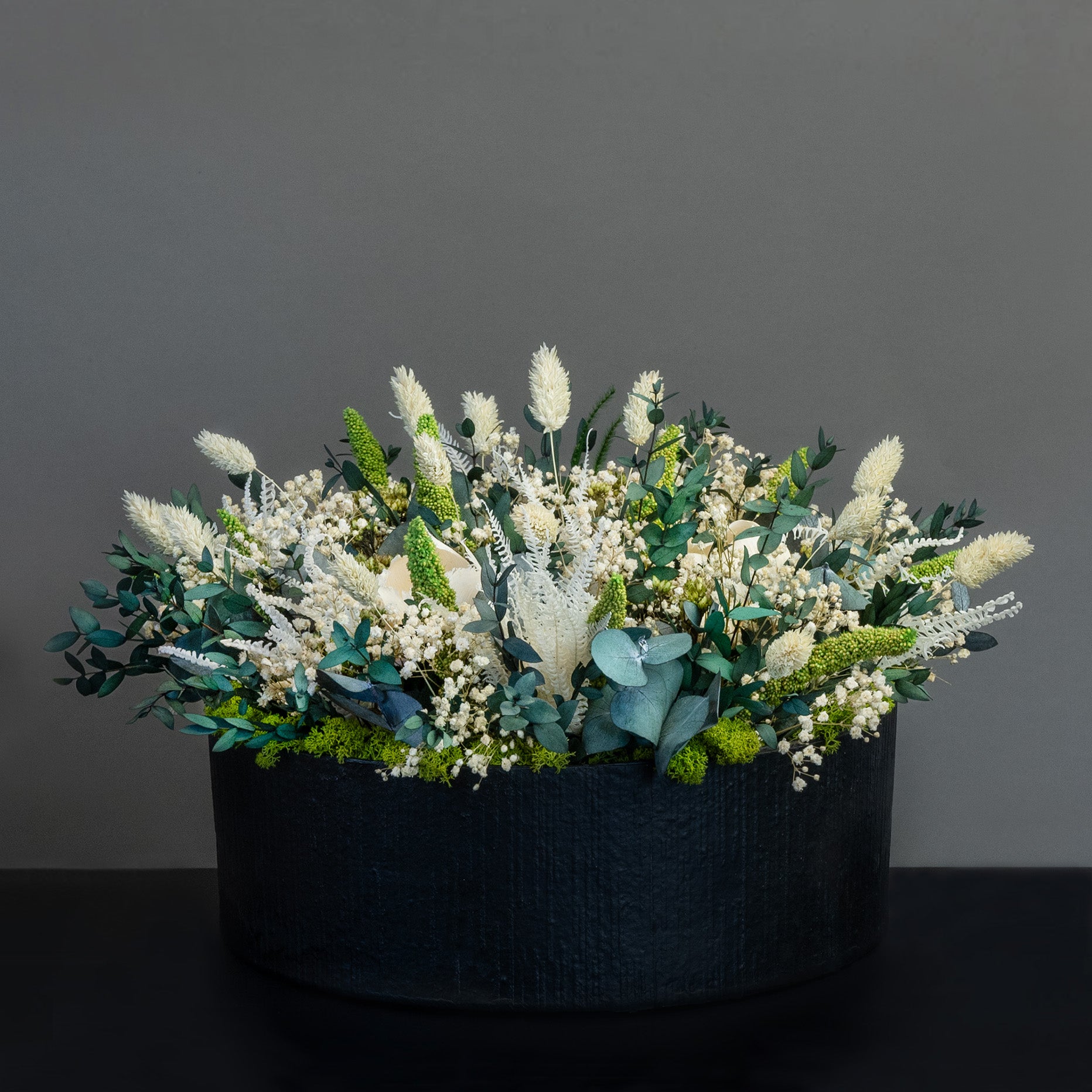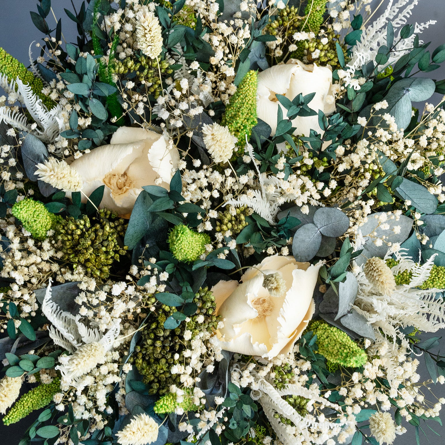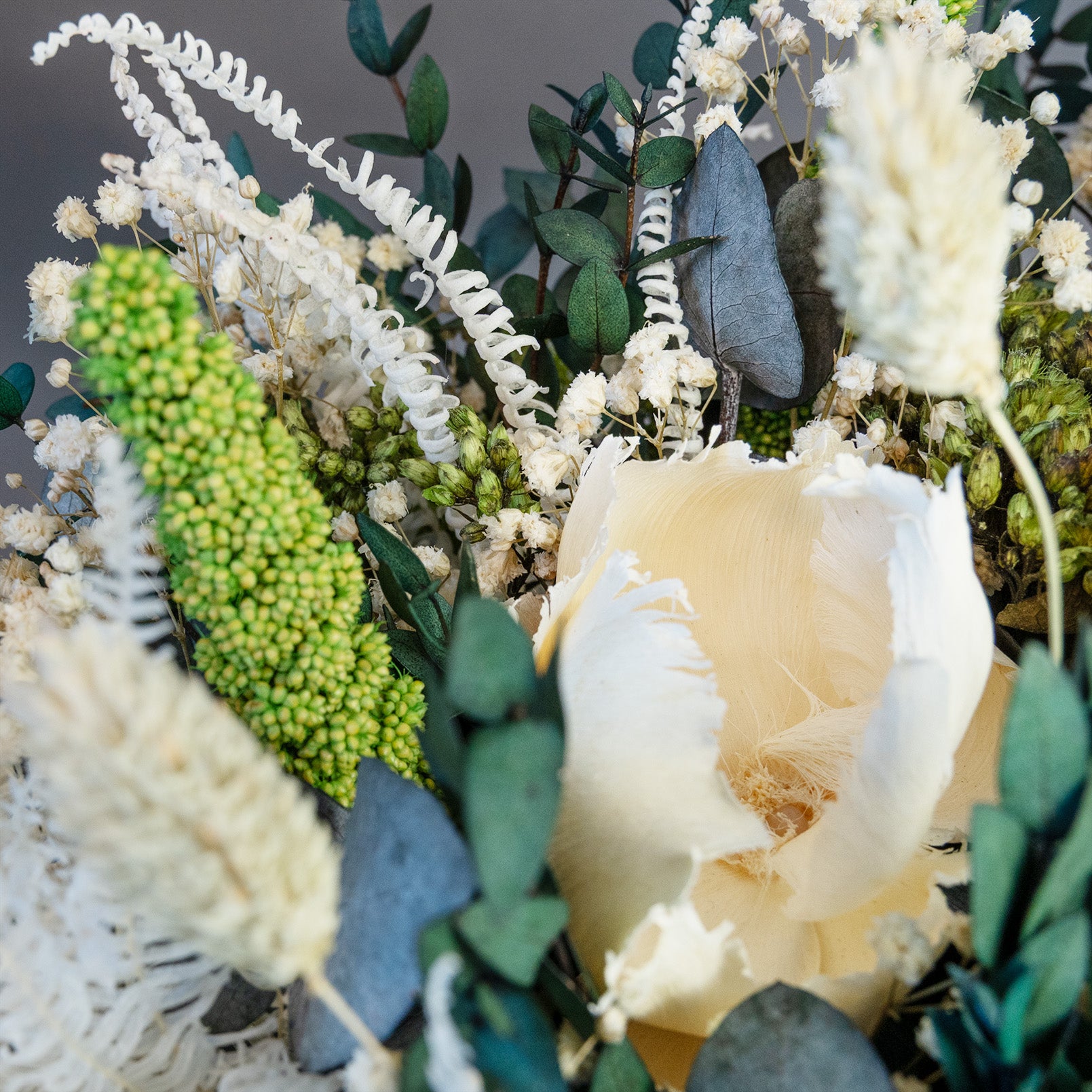 För dig som uppskattar ljusa och harmoniska toner är buketter med vita blommor ett självklart val. Våra buketter kombinerar levande och torkade blommor i vita nyanser — vilket ger ett rent, skandinaviskt uttryck med naturlig doft och smidig textur. De passar både moderna och klassiska miljöer och fungerar utmärkt som en stilren inredningsdetalj som håller i minst 6 månader.