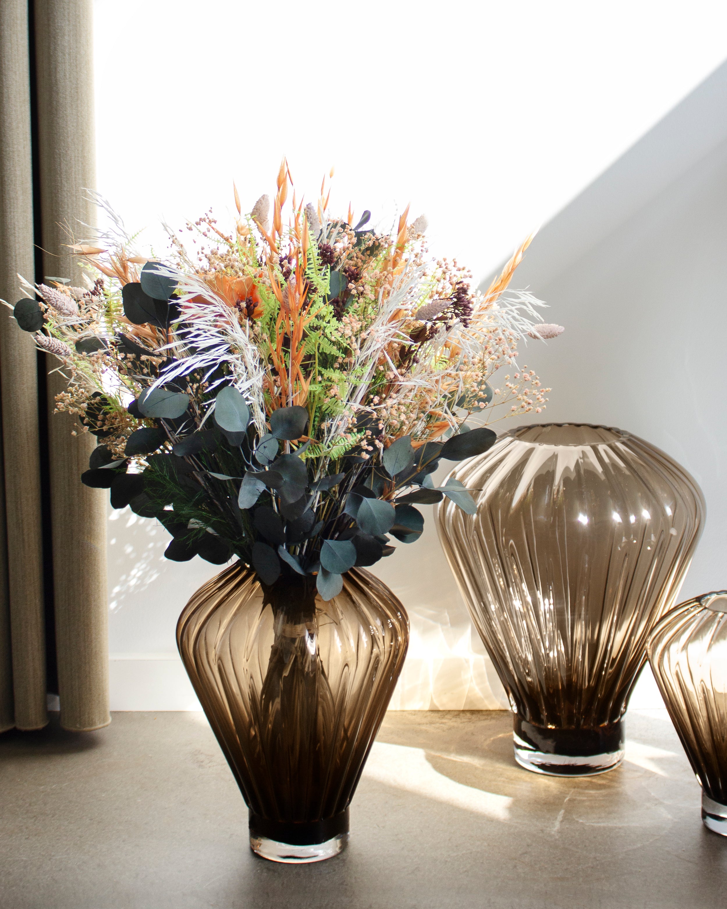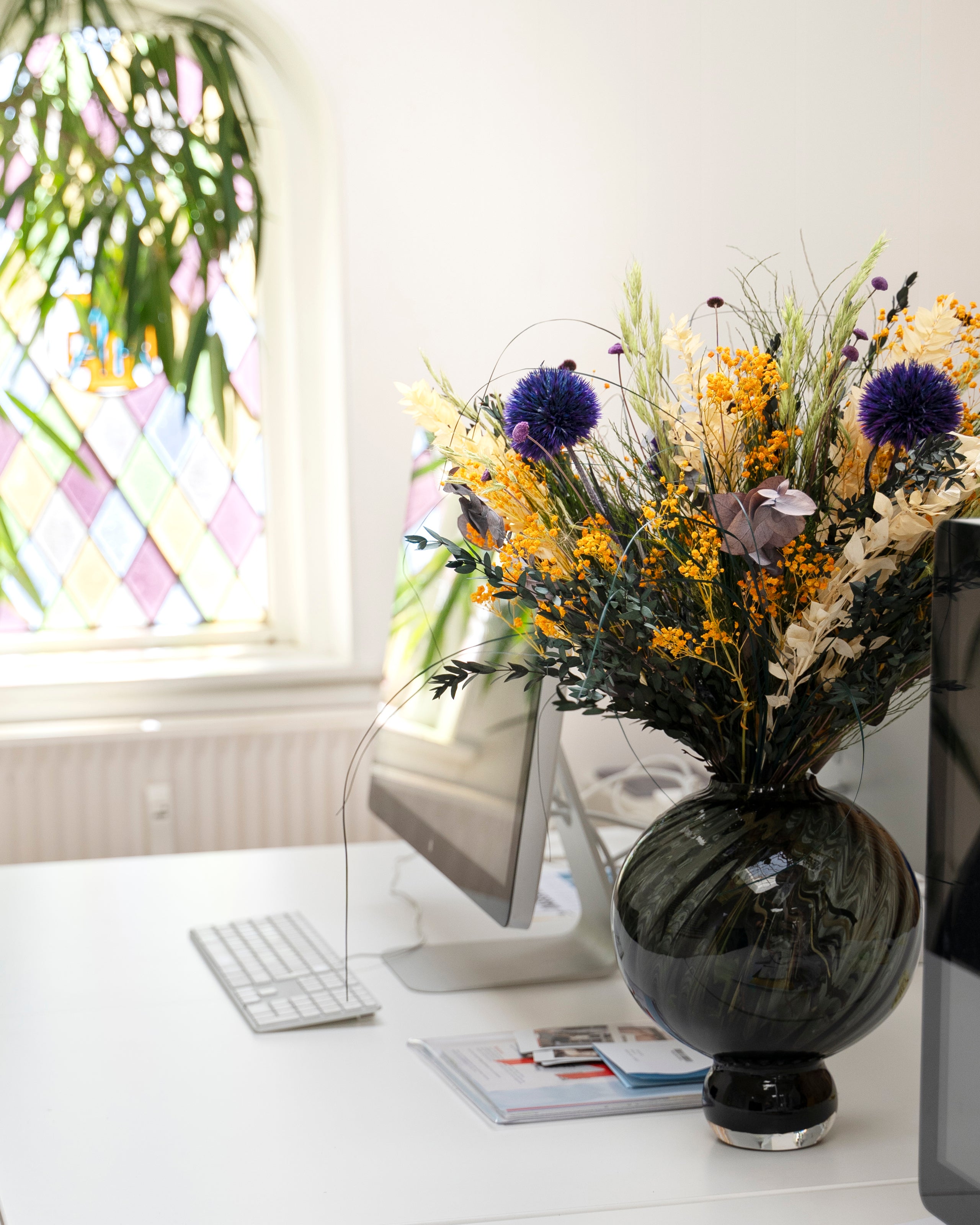 Våra blommor kräver varken skötsel eller vatten – de placeras bara i vasen och kan sedan sprida glädje i minst 6 månader.