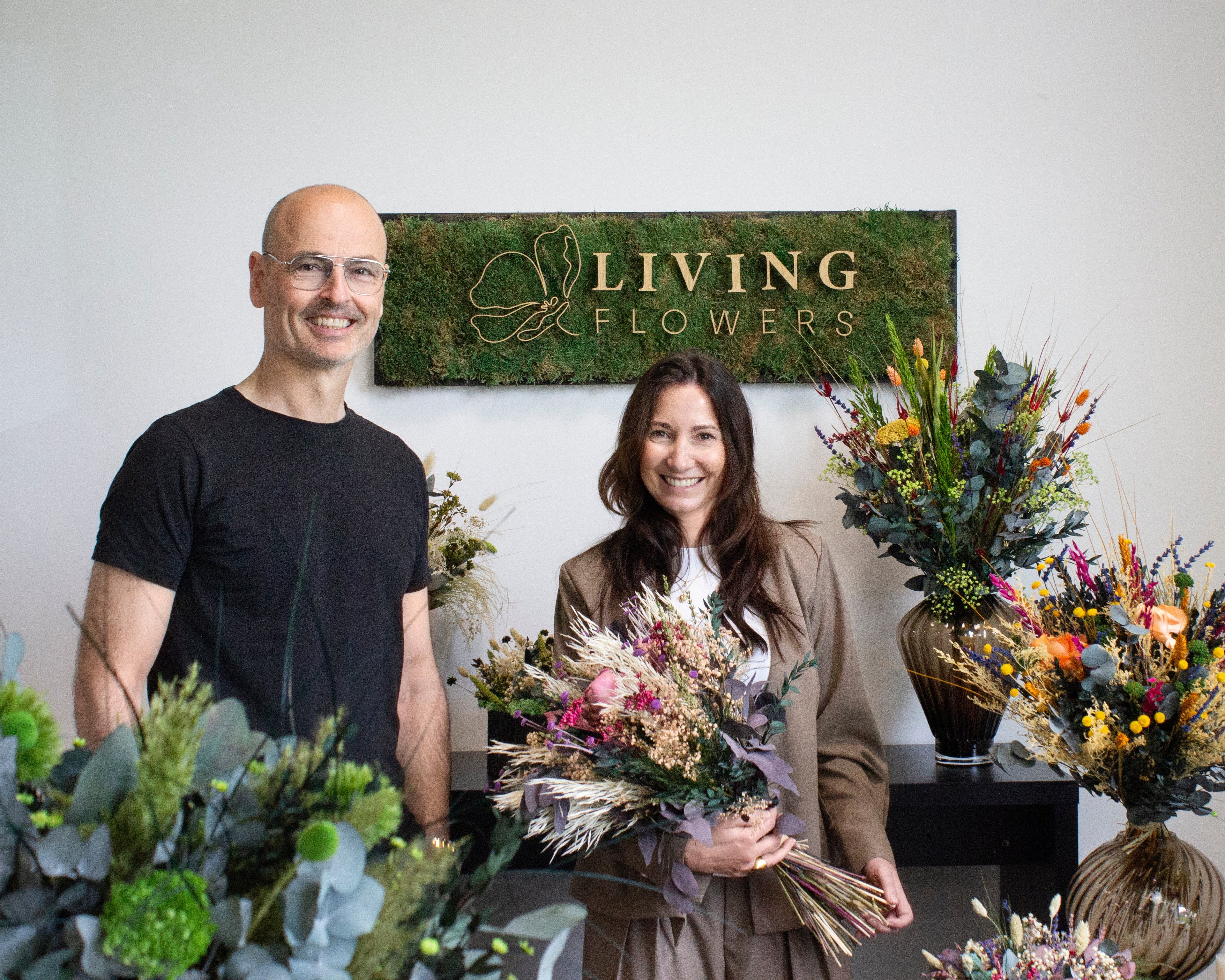Living Flowers blommor är perfekta för inredning på kontoret, i väntrummet, på friörsalongen eller i butiken – enkelt och smidigt. Våra blommor är riktiga blommor som håller i minst 6 månader utan skötsel eller vatten. Så enkelt är det.
