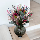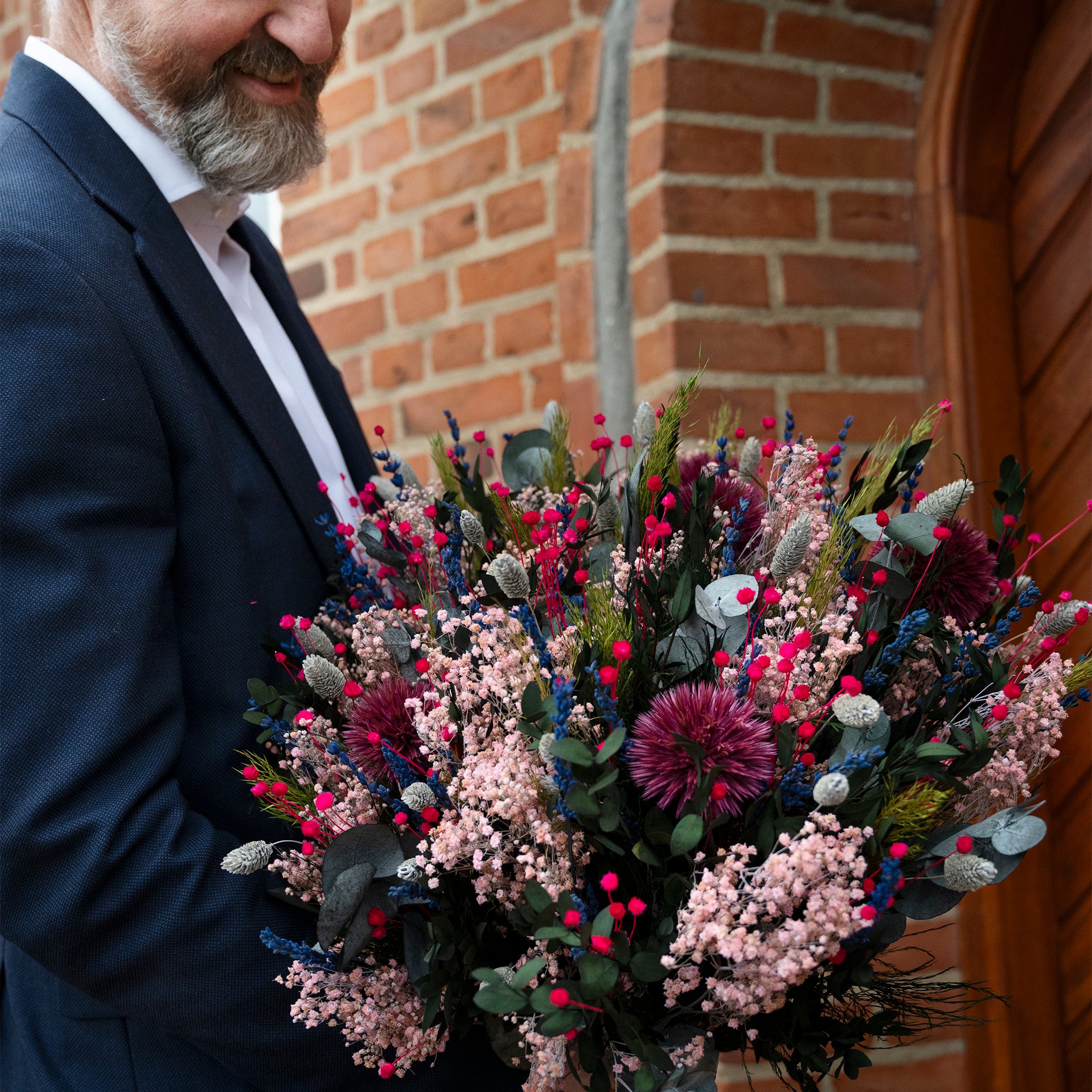 Alla våra låndtidshållbara buketter är handbundna, vilket säkerställer en hög kvalitet, ger långvarig glädje och ett vackert uttryck. Buketterna är unika eftersom våra blommor är naturprodukter och därför uppstår naturliga variationer i färg, storlek och utseende.
