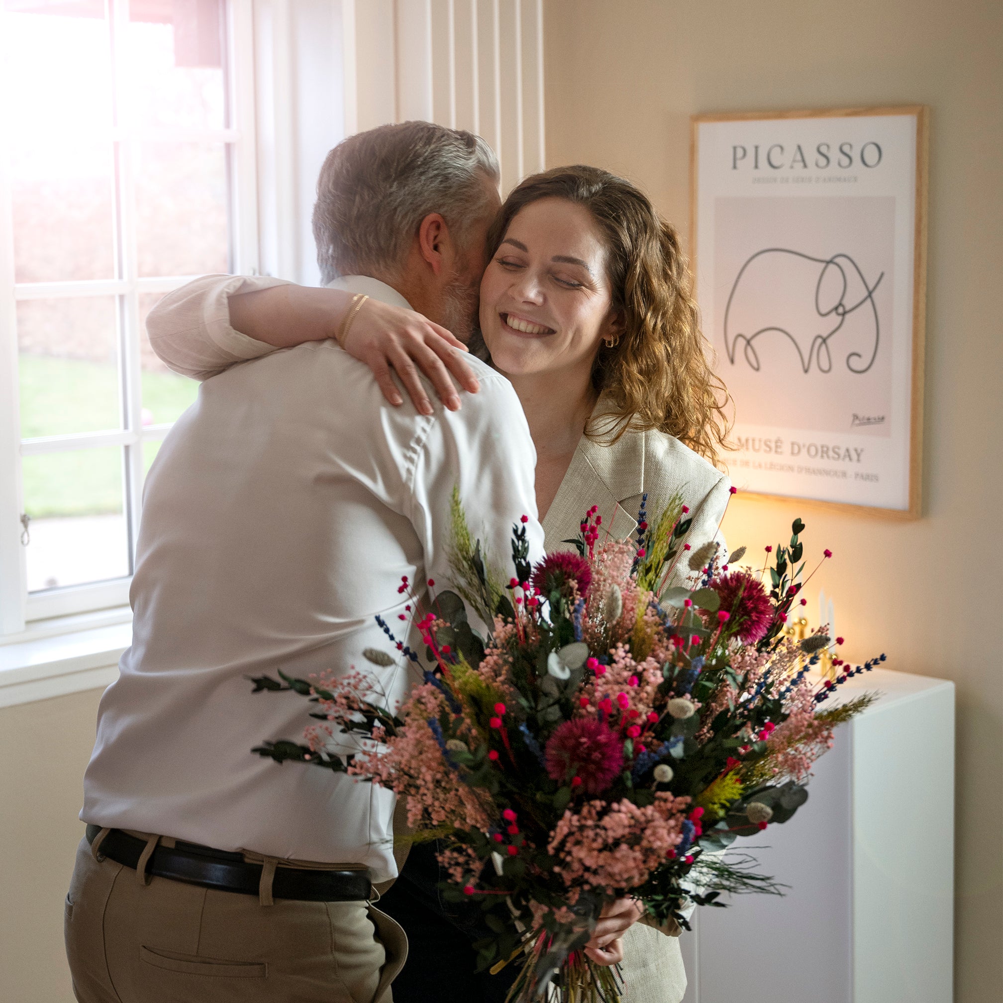 En långtidshållbar bukett / evighetsblommor – Living Flowers blommor håller i minst 6 månader. Glädjen varar längre.