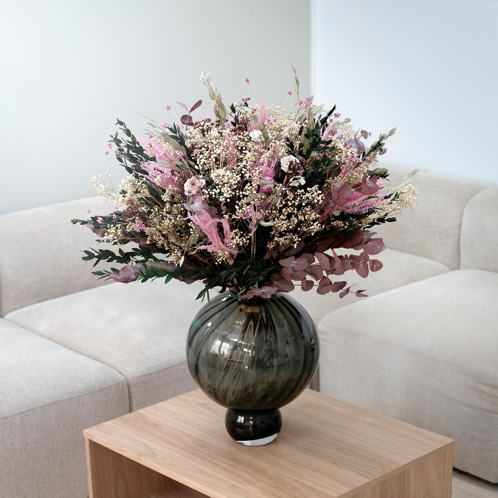 Alla våra låndtidshållbara buketter är handbundna, vilket säkerställer en hög kvalitet, ger långvarig glädje och ett vackert uttryck. Buketterna är unika eftersom våra blommor är naturprodukter och därför uppstår naturliga variationer i färg, storlek och utseende.