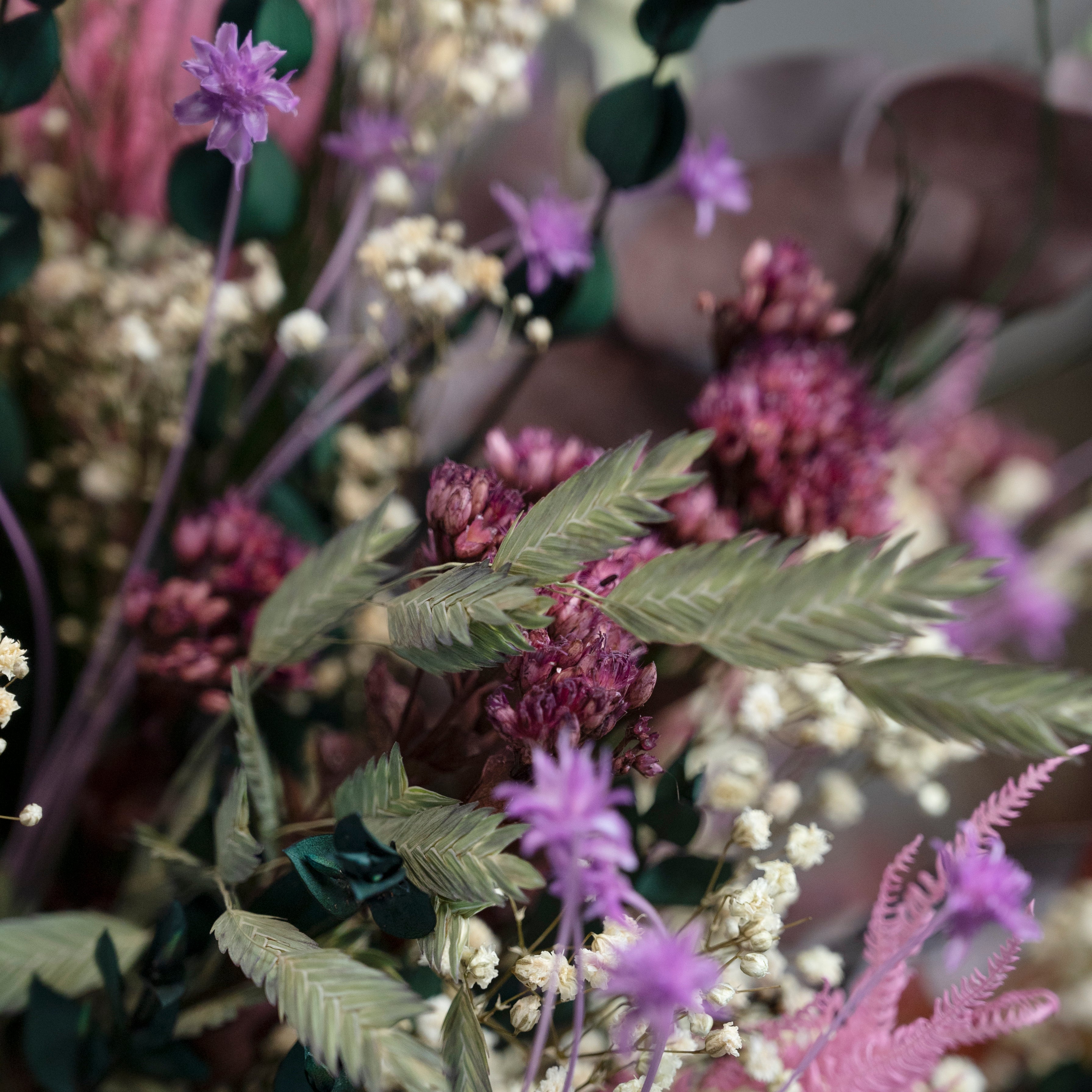 Våra buketter är varken som traditionella färska eller torkade blommor – de är någonstans mittemellan.