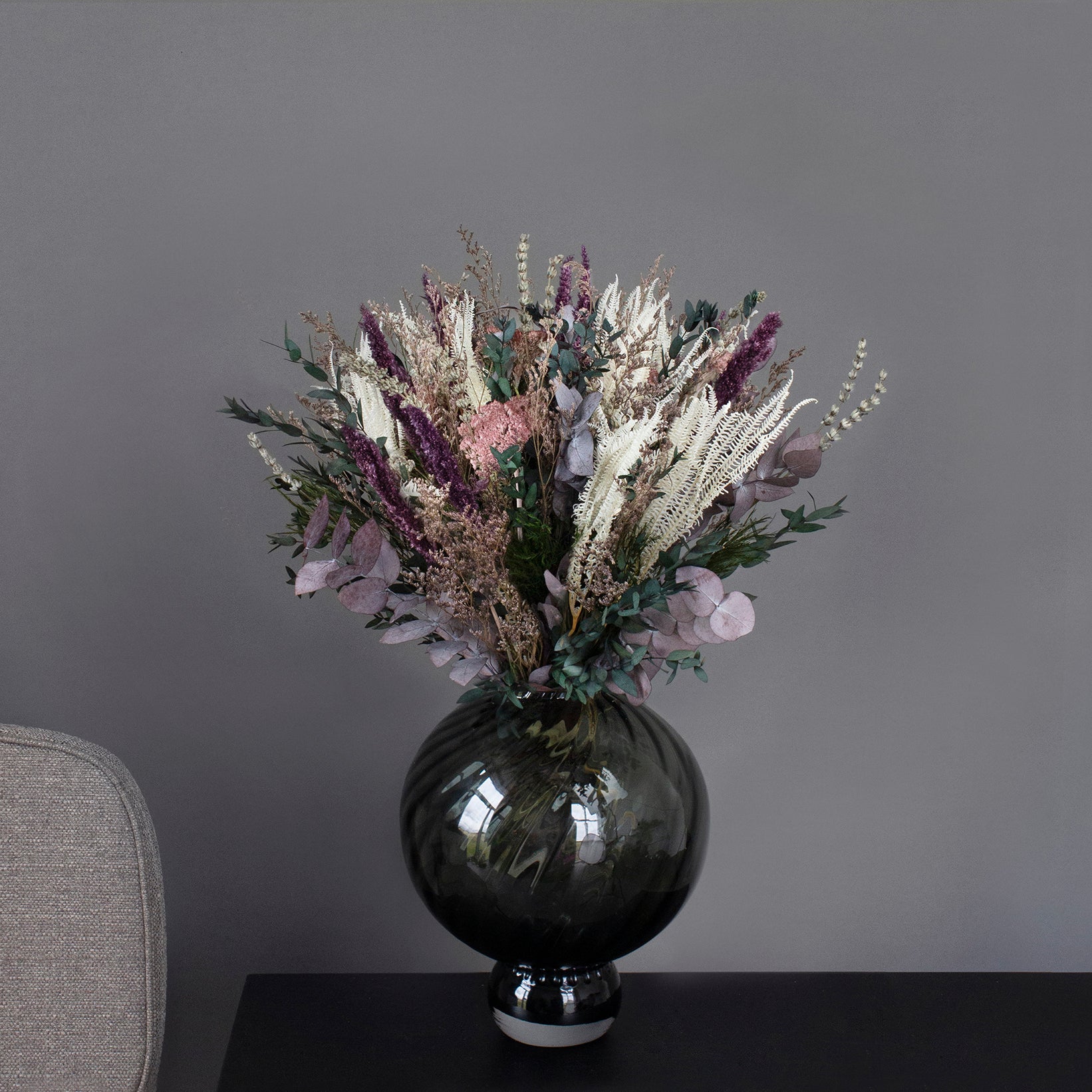 De noggrant utvalda blommorna skapar balans och stil, och buketten håller sig vacker i minst 6 månader – helt utan vatten eller skötsel.