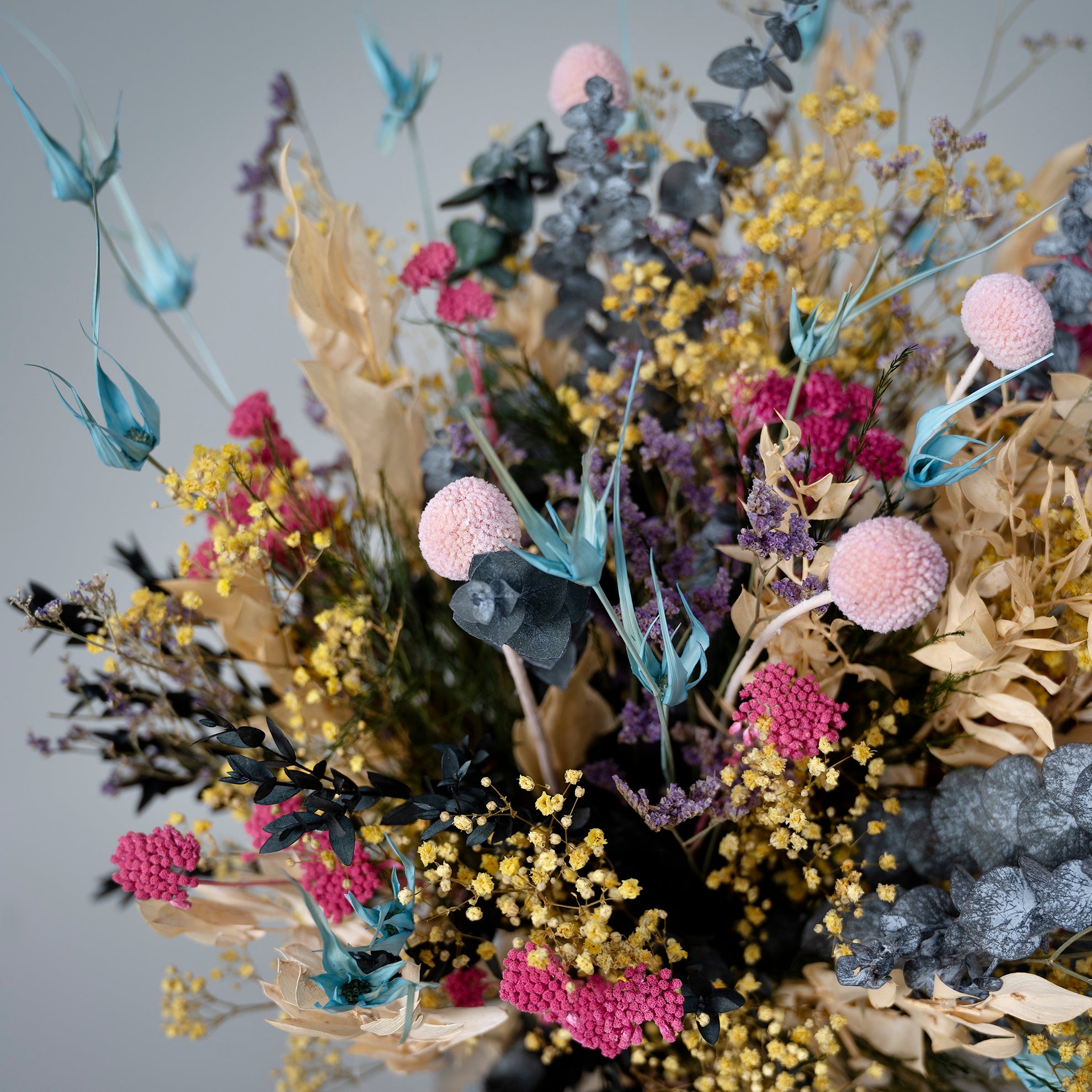 Våra buketter är varken som traditionella färska eller torkade blommor – de är någonstans mittemellan.