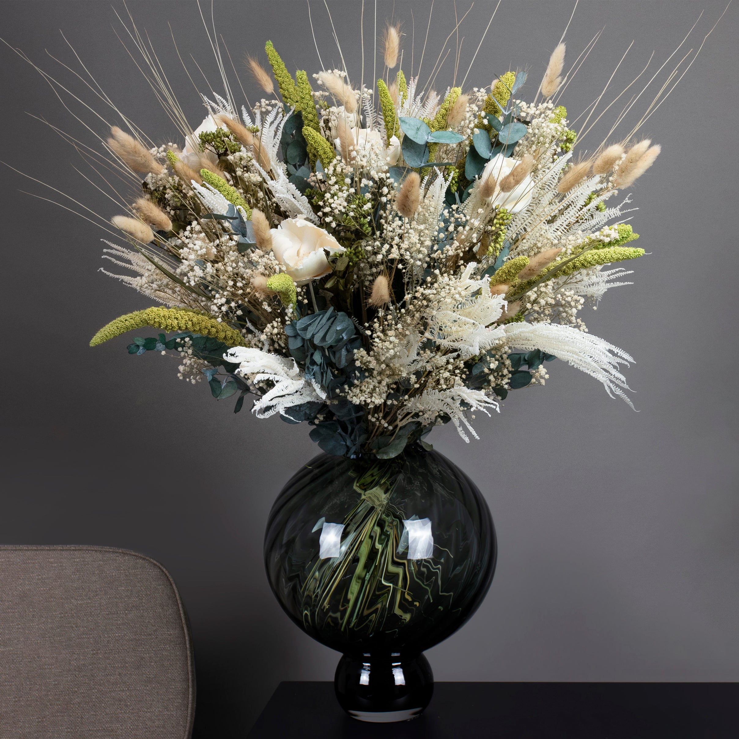 Denna bukettstorlek kräver gott om utrymme – vi rekommenderar breda och runda vaser med en höjd på 30–55 cm.