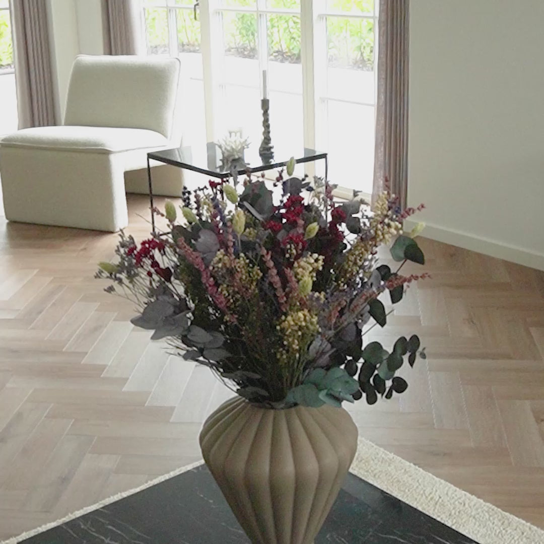 Bukett Enkel - Har en höjd på 50-55 cm och passar elegant till ett litet matbord, soffbord eller en byrå.Vi rekommenderar breda och runda vaser med en höjd på 15-25 cm.