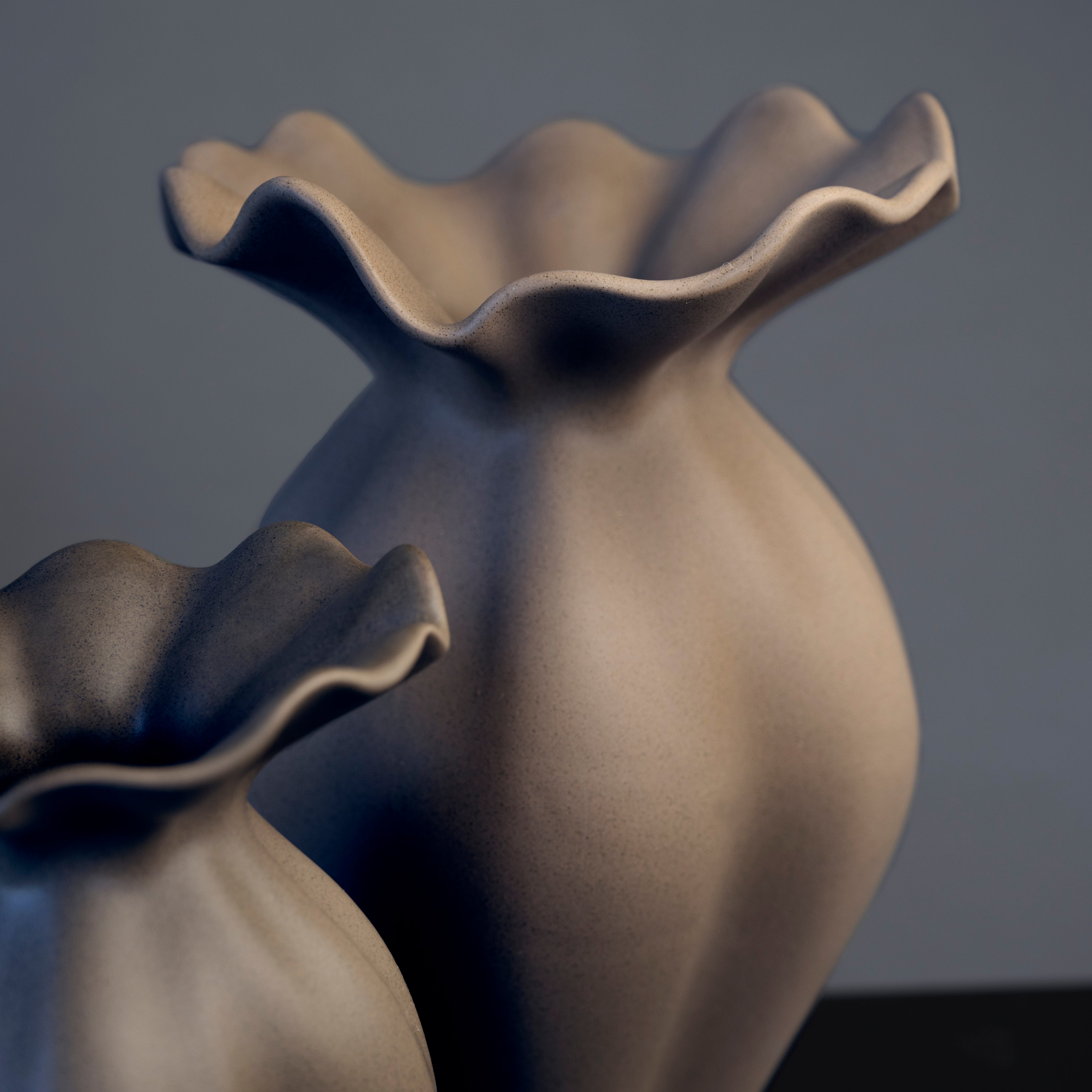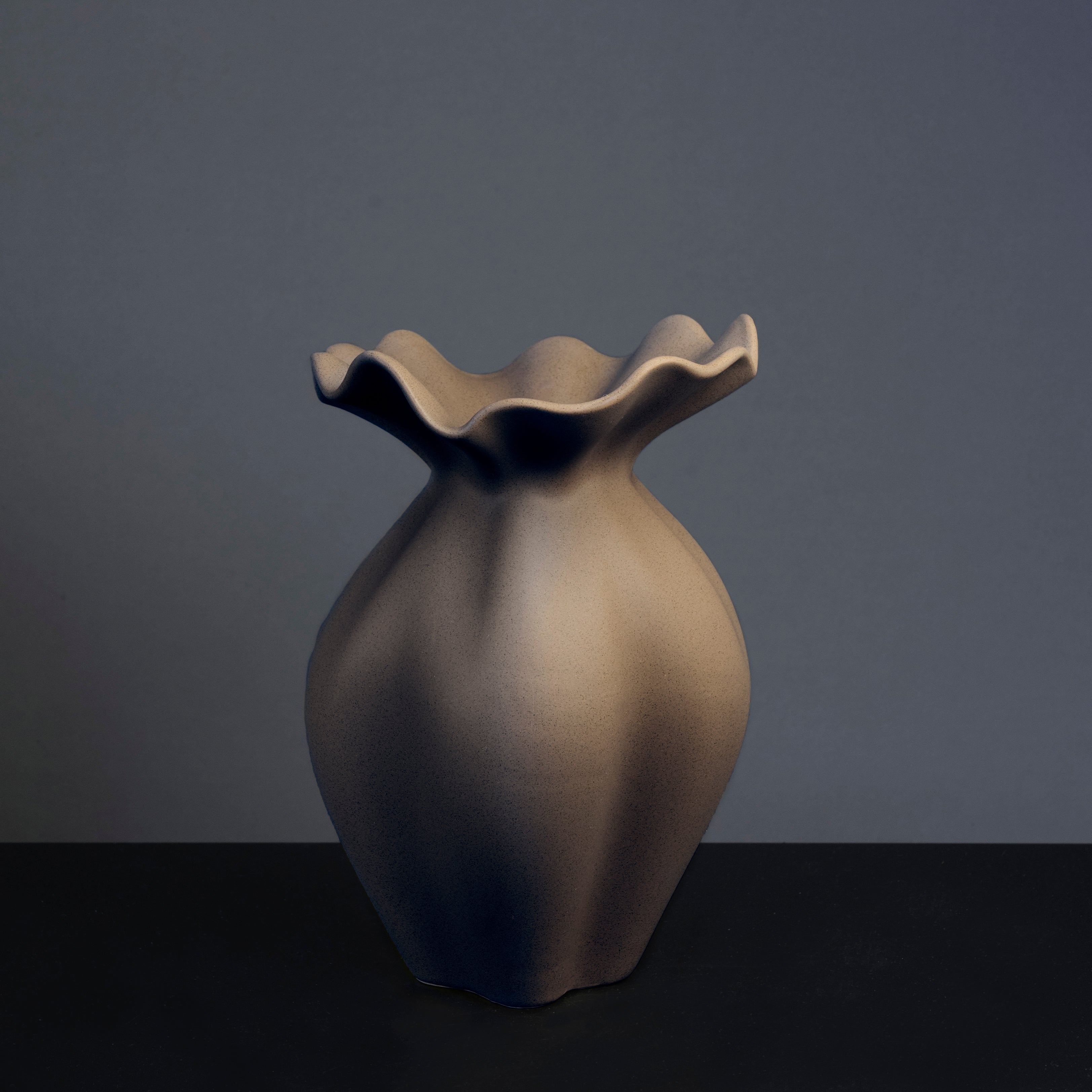 Nellie-vasen Àr med sina unika och naturliga karaktÀrsdrag ett skulpturellt inslag i hemmet. Med sin organiska form i keramik fungerar vasen som ett konstverk i sig sjÀlv. Den slÀta ytan och de böljande linjerna tillför elegans och en modern touch till alla rum. Vasens organiskt formade öppning Àr inspirerad av naturens skönhet.